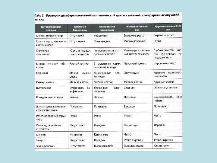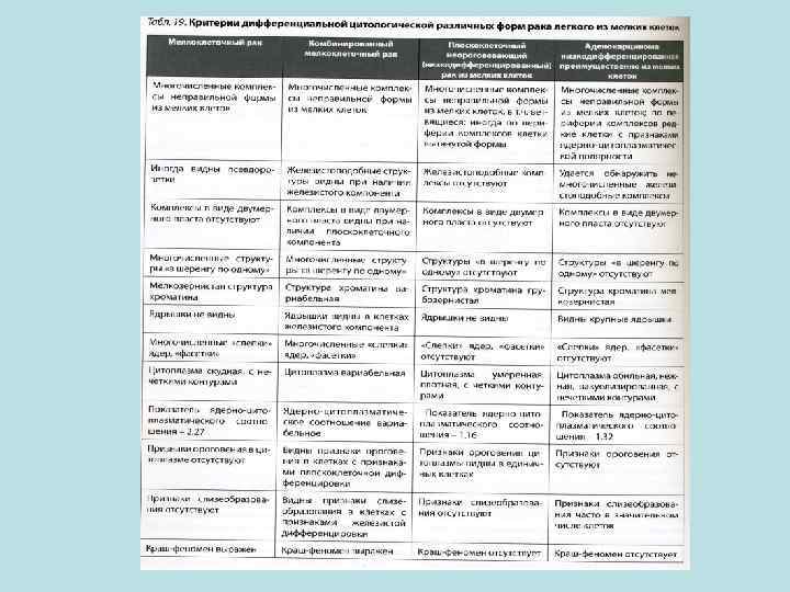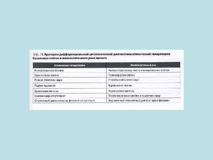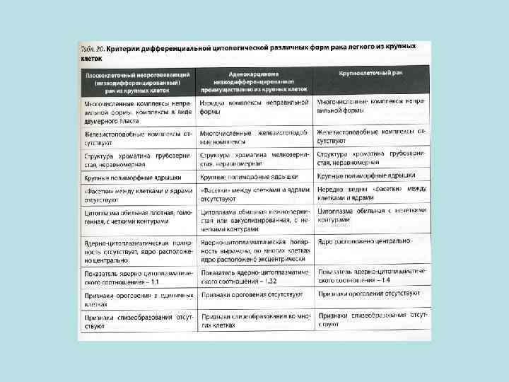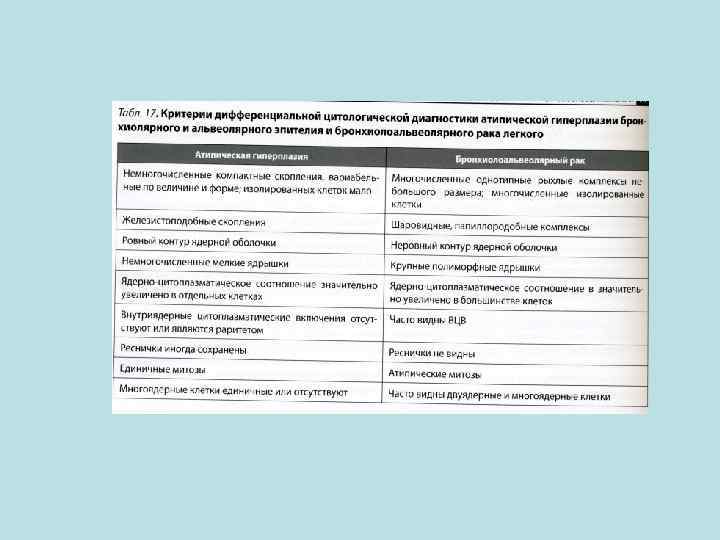 Влияние химиотерапии (атипичные цилиндрические клетки) «Плоскоклеточная жемчужина» Атипичные бокаловидные клетки Атипия бронхиальных клеток