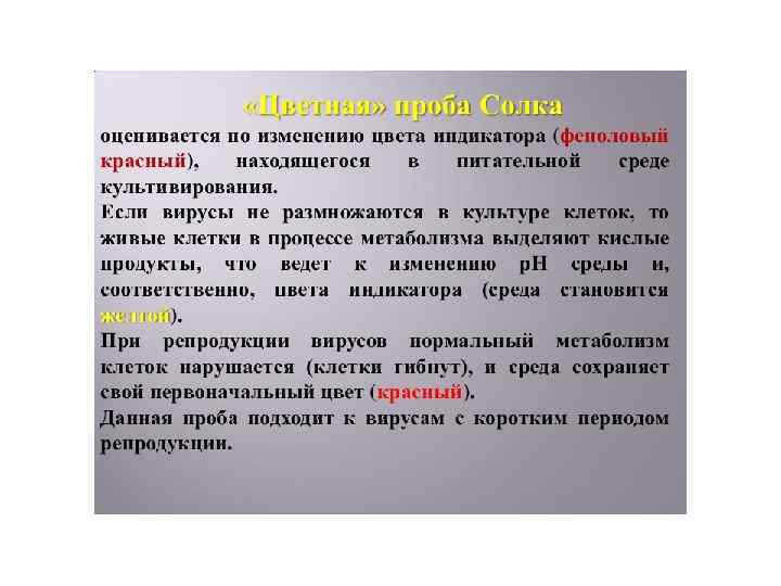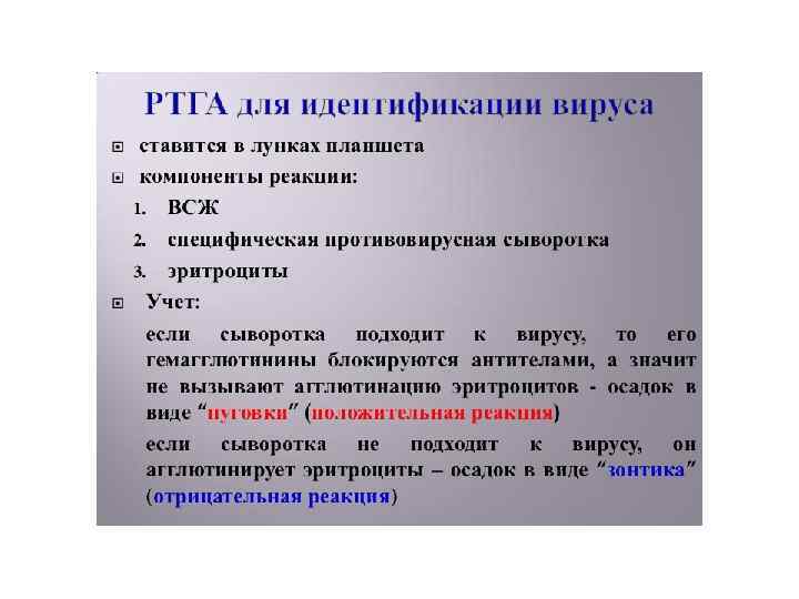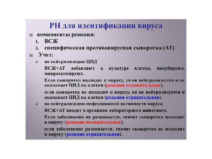 III. СЕРОЛОГИЧЕСКИЙ МЕТОД (СЕРОДИАГНОСТИКА) ØРТГА ØРСК ØИФА ØРН с учетом: • по нейтрализации ЦПД • по нейтрализации инфекционной активности вируса • по цветной пробе Солка • по РТГАдс