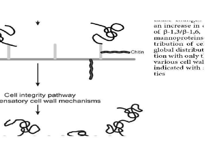 Функции КС • Морфогенетическая роль в определении образцов роста клеток грибов. Благодаря разному составу и способу отложения материала клеточных стенок, образуются мицелиальные или дрожжевые клетки. Клеточная стенка должна оставаться пластичной для обеспечения роста, деления клеток и формирования разных типов клеток (вегетативный мицелий, споры, плодовые тела, склероции и т. д. ) в цикле развития. Ее разрушение приводит к нарушению роста и морфологии клеток грибов и увеличивает вероятность быстрой гибели клеток. Клеточная стенка является мишенью для антигрибных препаратов.