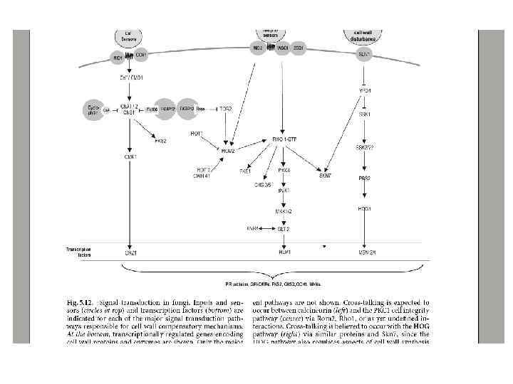 Функции КС • Защищает против физического и химического стресса, функционирует как защитный покров. Комбинирование механической прочности и высокой эластичности за счет присутствия полисахаридов позволяет стенке перераспределять физический стресс, обеспечивает эффективную защиту от механического и ферментативного разрушения и позволяет гифе проникнуть и расти внутри агрессивного субстрата