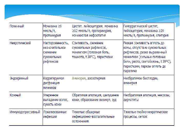 Синдромы в клинике ЦБ миелодепрессивный, ммунодепрессивный, диспептический, печёночный и другие гематологический синдром при цитостатической болезни иногда называют миелотоксическим агранулоцитозом.