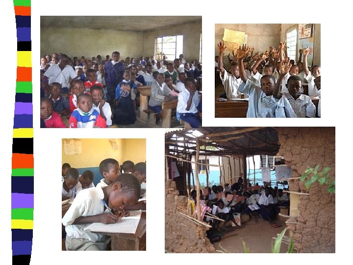Crisis, Adjustment, Change n Economic crisis, globalization, and structural adjustment n Political mismanagement/poor governance n In education sector – Demand outpaces resources and opportunity formal employment – Financing burden steadily shifted on to parents – cost sharing – From Universal Primary Education (UP) in 1971, 1974 and 1978 (Kenya) and 1978 (Tanzania) to a deterioration in both Quality and Access. (Tanzania dropped to 70% enrollment by 1990; Kenya dropped to 86. 9% by 1998) n From the late 1980 s: – structural reform/economic liberalization - limited aid. – education sector reforms focus on privatization, cost-sharing, containment of dissatisfaction through decentralization. n n In mid 1990 s: political liberalization Late 1990 s: – New governments promise EFA; abolish user fees – New donor resources for EFA and transnational advocacy “rights” – Continuing dilemmas = equality, demand, dependency.