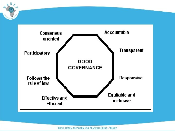Scope of Presentation • Broad Context of the Professional Resources and Skills needed for efficient and good governance • What is Civil Society? • Elections as Integral to Good Governance • A Conceptual Framework for Conflict Transformation • The WANEP Experience • Dialogue Design and implementation of J-PERM • Follow on up commitments to peace • Lessons Learned