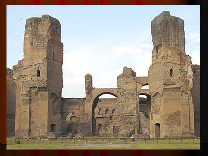 Многочисленные города на обширных просторах Римской империи создавались во одному плану: две крестообразно пересекающиеся магистрали — одна с севера на юг, другая — с востока на запад. На их пересечении — площадь с базиликой, рынком, Капитолийским храмом и храмом императора, вблизи от нее — место для зрелищ (амфитеатр или цирк). Вокруг города располагалась территория, где расположены земельные участки граждан. Считалось, что иначе люда жить не могут, ибо жить по-человечески, не по-варварски, — значит жить в городе, участвовать в общественной жизни. Именно поэтому римская архитектура изобилует сооружениями общественного характера. Центром римского искусства по праву был Рим.