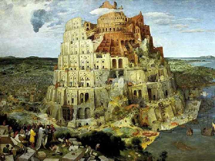 Вавилонская Башня n Вавило нской ба шне было нской шне посвящено библейское предание. Согласно этому преданию, после Всемирного потопа человечество было представлено одним народом, говорившим на одном языке. С востока люди пришли на землю Сеннаар (в нижнем течении Тигра и Евфрата), где решили построить город (Вавилон) и башню высотой до небес, чтобы «сделать себе имя» . Строительство башни было прервано Богом, который создал новые языки для разных людей, из -за чего они перестали понимать друга, не могли продолжать строительство города и башни и рассеялись по всей земле