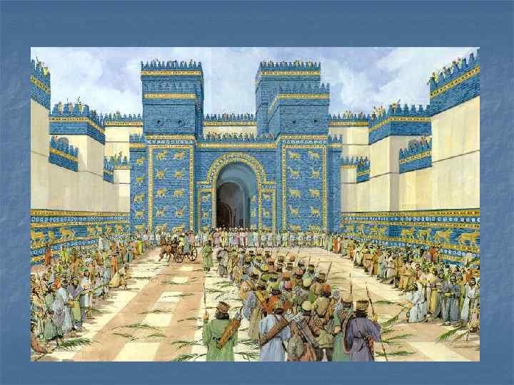 Вавилон n Город Вавилон был основан в глубокой древности на берегу Евфрата. Его название означает «Врата Бога» . Вавилон являлся одним из крупнейших городов Древнего мира и был столицей Вавилонии, царства, просуществовавшего полтора тысячелетия, а затем державы Александра Македонского.