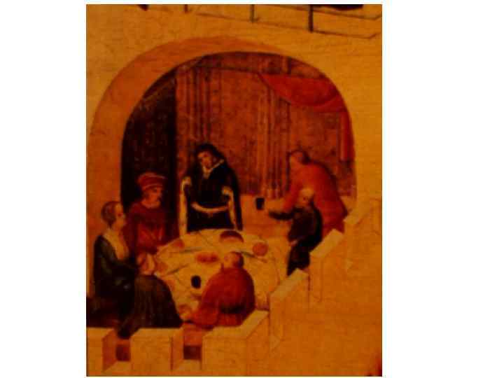 Справа кладутся чаша и нож, слева — хлеб. Многие, стоит им сесть за стол, начинают хватать еду рукой с блюда. Так делают волки или росомахи. Не хватай еду с принесенного блюда первым. Пальцы в соус макают только крестьяне. Не обшаривай все блюдо, но бери первый попавшийся тебе кусок. Сначала вытри рот. Лучше тебе оставить эту привычку, — советует Эразм. — Не очень прилично предлагать другому наполовину прожеванное.