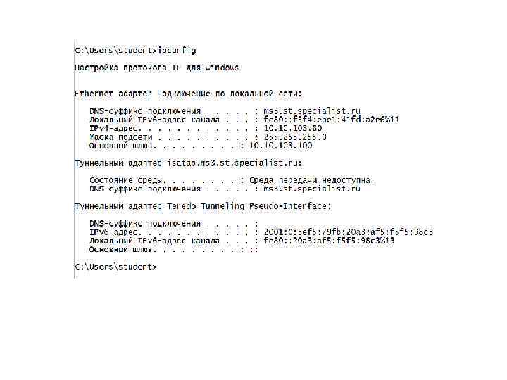 Типы туннелей RFC 2893 определяет следующие типы туннелей: • Сконфигурированный (MCT – Manually Configured Tunnels) Сконфигурированный туннель требует ручной конфигурации туннельных конечных точек Чтобы вручную создать сконфигурированные туннели для протокола IPv 6 в Windows, используйте команда : netsh interface ipv 6 add v 6 v 4 tunnel • Автоматический туннель - туннель, который не требует ручной конфигурации. Протокол IPv 6 для Windows поддерживает следующие технологии автоматического туннелирования: • ISATAP (Intra-Site Automatic Tunnel Addressing Protocol) - Протокол автоматической внутрисайтовой адресации туннелей. Используемый для одноадресной передачи через интранет IPv 4 и включен по умолчанию. • 6 to 4 – динамический туннель “ 6 в 4” Используемый для одноадресной передачи через Интернет IPv 4 и включен по умолчанию. Эти туннели не работают, если между конечными точками используется трансляция NAT протокола IPv 4. • Teredo Используемый для одноадресной передачи через Интернет IPv 4 , если между конечными точками используется трансляция NAT протокола IPv 4.