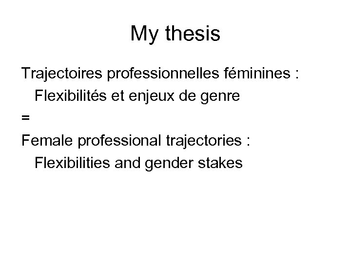 My thesis Trajectoires professionnelles féminines : Flexibilités et enjeux de genre = Female professional trajectories : Flexibilities and gender stakes