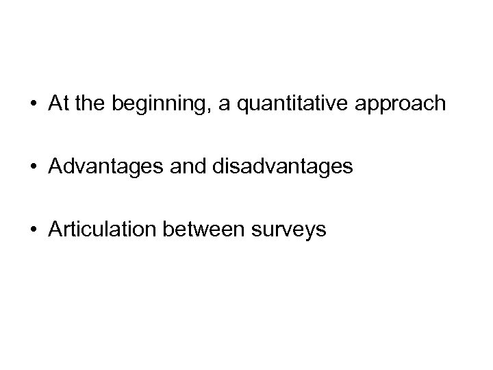 • At the beginning, a quantitative approach • Advantages and disadvantages • Articulation between surveys