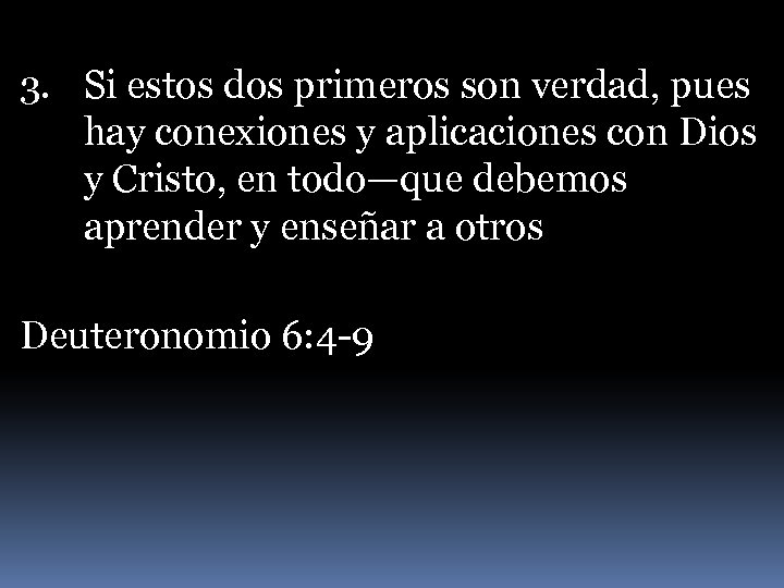 3. Si estos dos primeros son verdad, pues hay conexiones y aplicaciones con Dios y Cristo, en todo—que debemos aprender y enseñar a otros Deuteronomio 6: 4 -9