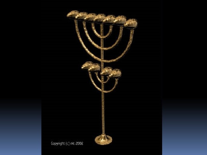 El significado del Tabernáculo: El Mesías Los holocaustos—señal del Cordero venidero La fuente de bronce—Agua viviente que purifica La mesa de panes (presencia), y la maná—El Pan de la Vida Las tablas de la ley—La Palabra de Dios La vara de Aarón, y el sumo sacerdote—la autoridad del venidero Sumo Sacerdote El candelabro—La Luz del Mundo El sumo sacerdote—señal del Perfecto que intercede El oro y la púrpura—la realeza La madera de acacia—Dios hecho hombre común Las espinas de acacia—sufrimiento venidero, corona