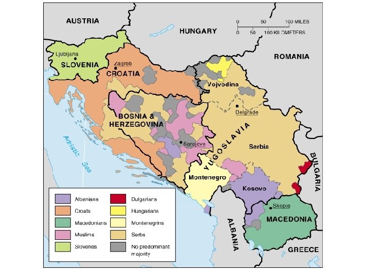 Balkan Peninsula • New countries: Slovenia, Croatia, Macedonia, Yugoslavia (Serbia) • Bosnia and Herzegovina – 40% Bosnian Muslim, 32% Serbian, 18% Croatian (4. 2 million total) – Ethnic cleansing of Bosnian Muslims
