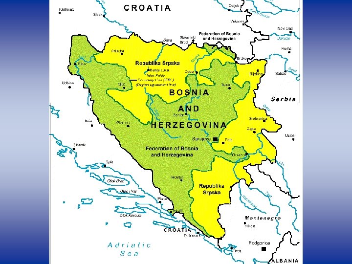Balkan Peninsula • 250, 000 dead; 2. 7 million refugees of 4. 2 million (half returned) • Dayton Accords (1995) – Two republics – Rotating presidency