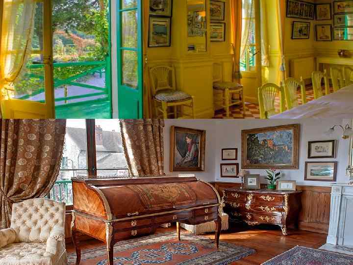 LA MAISON DE MONET En entrant dans la maison de Monet, le visiteur doit imaginer la maison résonnant des cavalcades huit enfants, des allées et venues de Claude Monet entre son atelier et le jardin, l’atmosphère qui régnait dans la cuisine dès le matin quand les légumes arrivaient tout frais du potager, les retours de marché, les arrivées des amis venus de Paris…