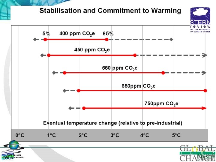 Main threat to a sustainable Earth Trajectories towards stabilization levels (ppm CO 2 -eq) Median GDP reduction (%) Range of GDP reduction (%) Reduction of average annual GDP growth rates (percentage points) 590 -710 0. 2 -0. 6 – 1. 2 < 0. 06 535 -590 0. 6 0. 2 – 2. 5 <0. 1 Not available <3 < 0. 12 445 -535 • According to IPCC AR 4/WGIII, the cost of avoiding the worst would be only a fraction of what Stern Report projected
