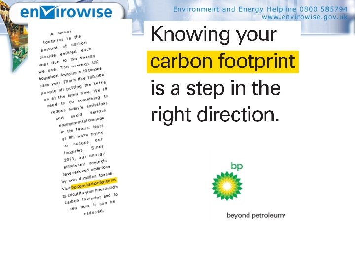 Product/service provision § Carbon emissions from manufacturing processes and embodied carbon in waste § Energy use in service industries – keeping equipment switched on § Making sure that any packaging is fit for purpose