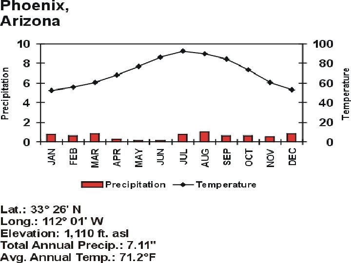 Climate graph (Climograph)- shows precipitation and temperature of a location bars = precipitation lines = temperature