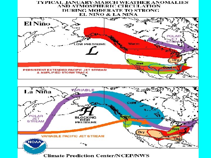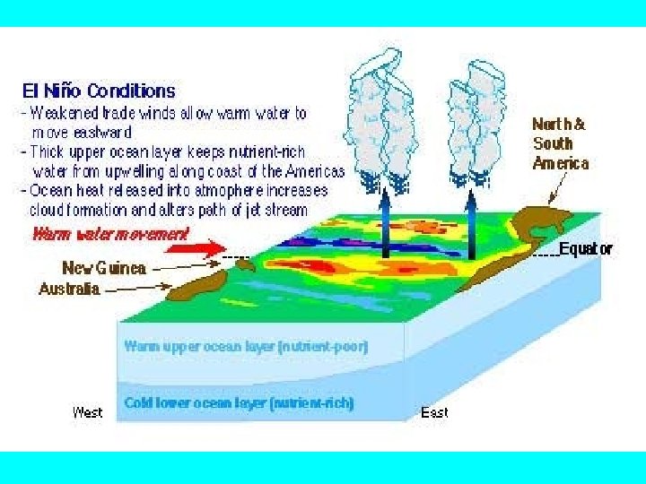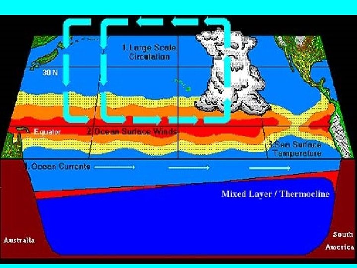 • http: //www. bom. gov. au/lam/Students_Teachers/elnanim/elani. shtml El Nino and La Nina • Climate pattern that happens every 5 -7 years • El Nino- Characterized by unusually warm sea surface temperatures in the Pacific Ocean • La Nina- characterized by unusually cold sea surface temperatures • The hot water usually comes first to the coasts of Peru and Ecuador in South America. In the 1500 s, fishermen who lived in South America began to wonder about a current of unusually warm water that came to their shore every few years near Christmastime. Since the fishermen believed in the birth of the Christ child at Christmas, and since they spoke Spanish, they named the hot water El Niño, which means "the infant" in Spanish http: //www. fi. edu/weather/nino. html