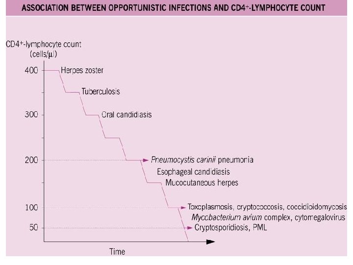 Key Points • Infections that develop as a result of damage to the immune system are called opportunistic infections or OIs • Most OIs and complications of HIV develop when the CD 4 count drops below 200/mm 3 • OIs are leading causes of morbidity and mortality in HIV-infected persons