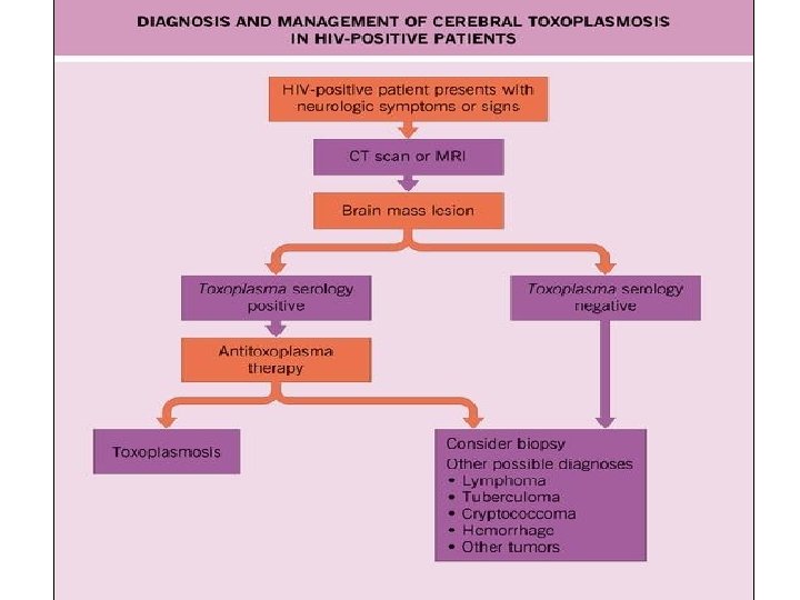 Treatment Considerations • The presentation is so characteristic that many guidelines suggest routine treatment for toxoplasmosis • A lack of response to such therapy (symptoms and MRI changes) within 1 -2 weeks indicates other possible conditions: – Central nervous system lymphoma – Tuberculoma – Cryptococcoma