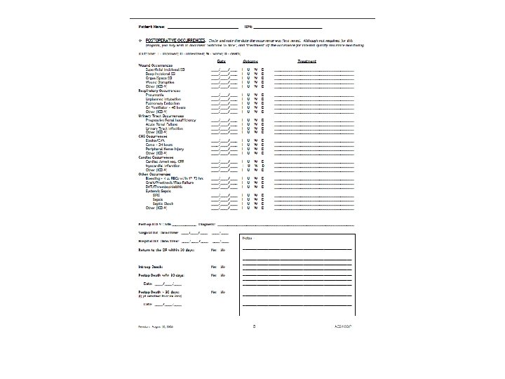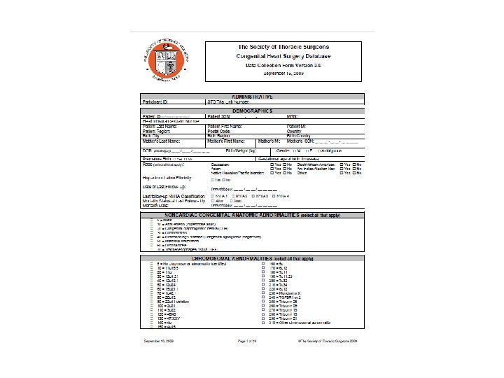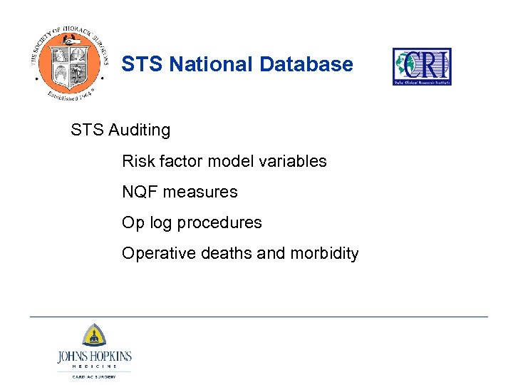 STS National Database STS Auditing Risk factor model variables NQF measures Op log procedures Operative deaths and morbidity