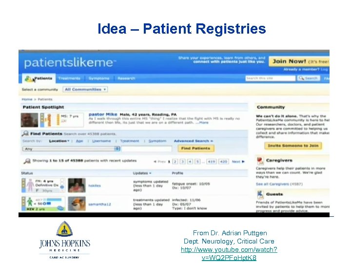 Idea – Patient Registries From Dr. Adrian Puttgen Dept. Neurology, Critical Care http: //www. youtube. com/watch? v=WQ 2 PFo. Hpt. K 8