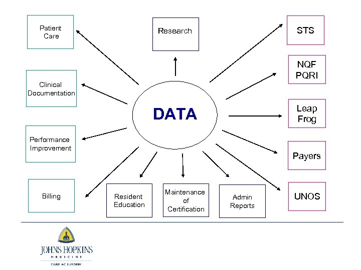 Patient Care STS Research NQF PQRI Clinical Documentation Leap Frog DATA Performance Improvement Billing Payers Resident Education Maintenance of Certification Admin Reports UNOS