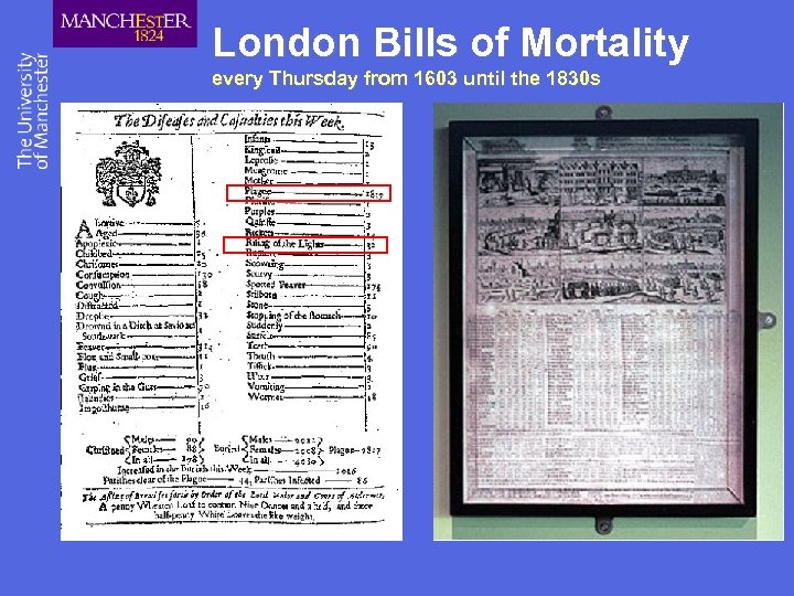London Bills of Mortality every Thursday from 1603 until the 1830 s