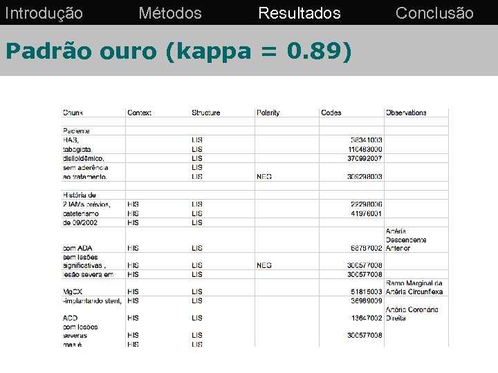 Introdução Métodos Resultados Padrão ouro (kappa = 0. 89) Conclusão