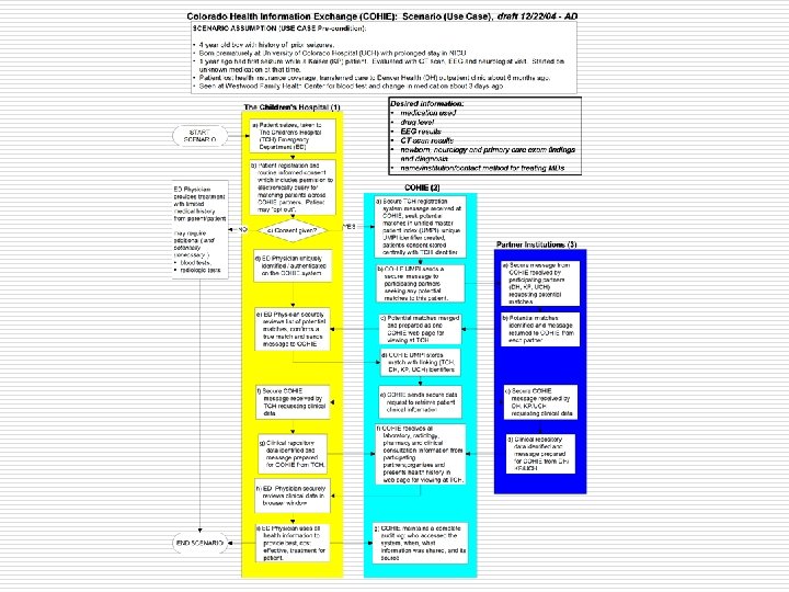 COHIE Initial Partners Building upon existing relationships o Shared communities and patient care: Pediatrics DH⇔TCH TCH⇔KPC o o Adults UCH⇔DH KPC ⇔ (& Exempla) UCHSC health professional training sites Technical: advanced IS and IT at four initial partner institutions with strong health information systems vendors (e. g. , Epic, Siemens)