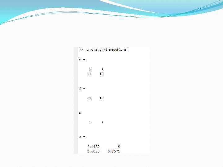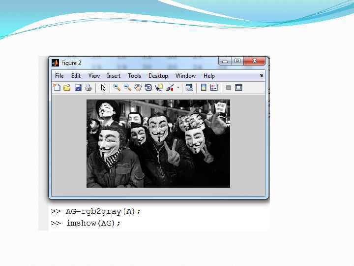 Пример • Пусть требуется написать функцию, которая вычисляет среднюю яркость изображения. • Двумерный массив f можно преобразовать в вектор-столбец v, написав оператор • v =f (: ) • Желательно, чтобы функция могла работать и с векторами, и с матрицами-изображениями. Программа должна выдавать сообщение об ошибке, если входной массив не является одномерным или двумерным.