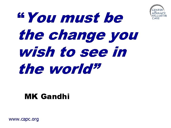 “You must be the change you wish to see in the world” MK Gandhi www. capc. org