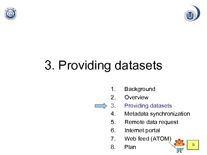 3. Providing datasets 1. 2. 3. 4. 5. 6. 7. 8. Background Overview Providing datasets Metadata synchronization Remote data request Internet portal Web feed (ATOM) Plan 9