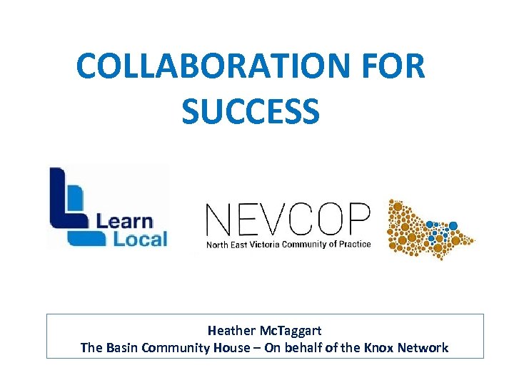 COLLABORATION FOR SUCCESS Heather Mc. Taggart The Basin Community House – On behalf of the Knox Network