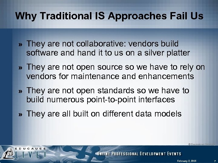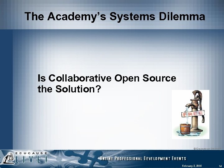 The Academy’s Systems Dilemma Is Collaborative Open Source the Solution? © Georgetown University February 2, 2005 14