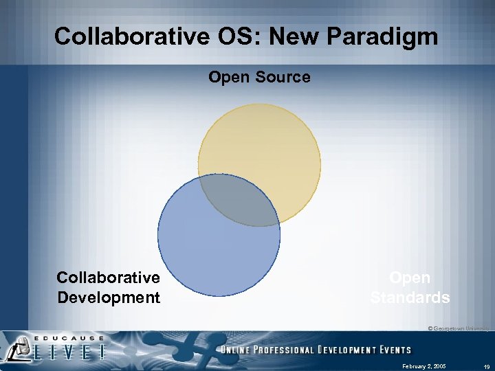 Collaborative OS: New Paradigm Open Source Collaborative Development Open Standards © Georgetown University February 2, 2005 19