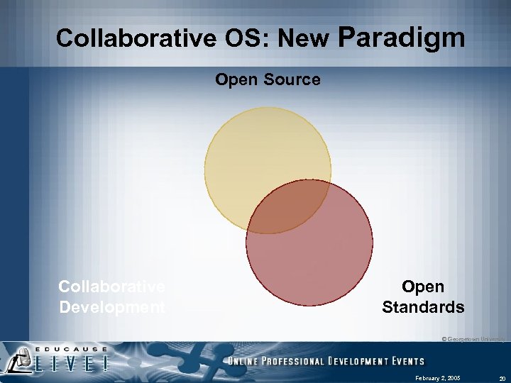 Collaborative OS: New Paradigm Open Source Collaborative Development Open Standards © Georgetown University February 2, 2005 20