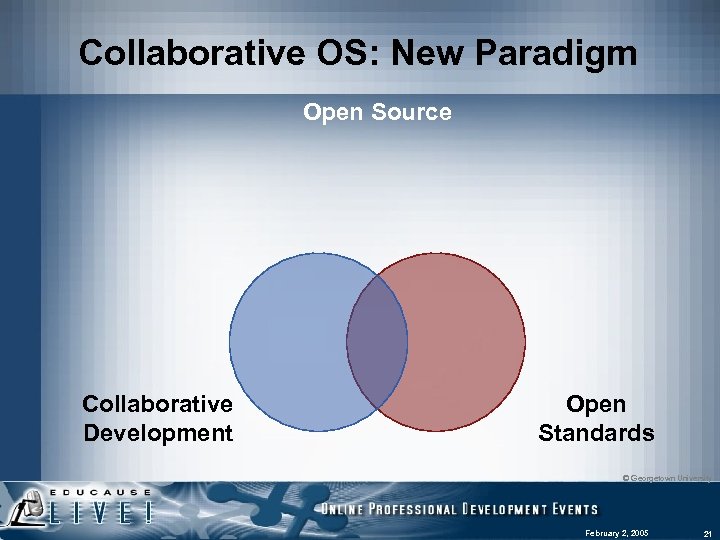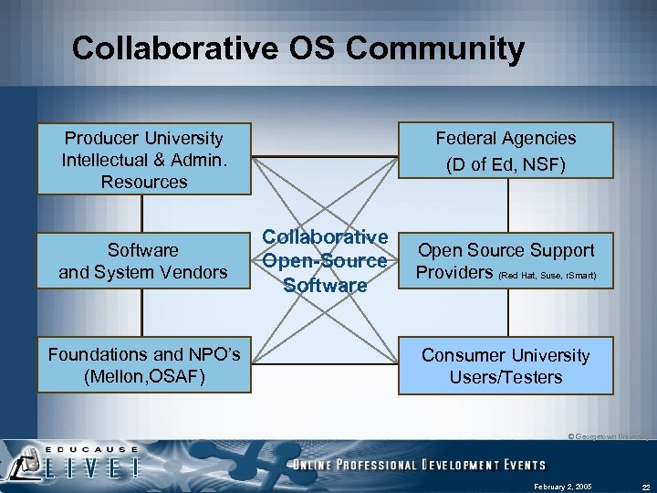 Collaborative OS: New Paradigm Open Source Collaborative Development Open Standards © Georgetown University February 2, 2005 21