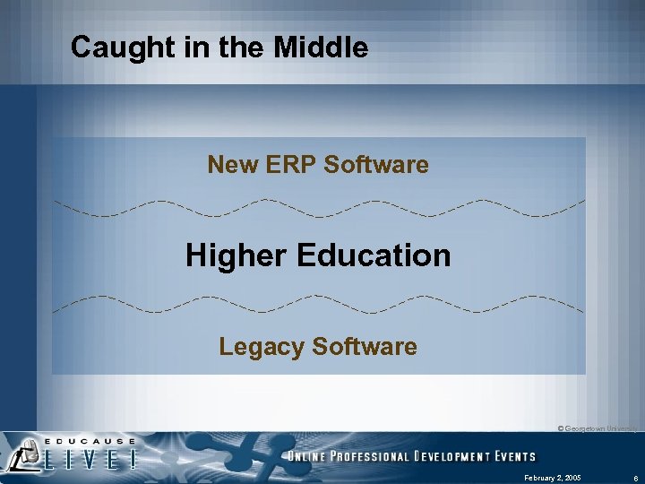 Caught in the Middle New ERP Software Higher Education Legacy Software © Georgetown University February 2, 2005 6