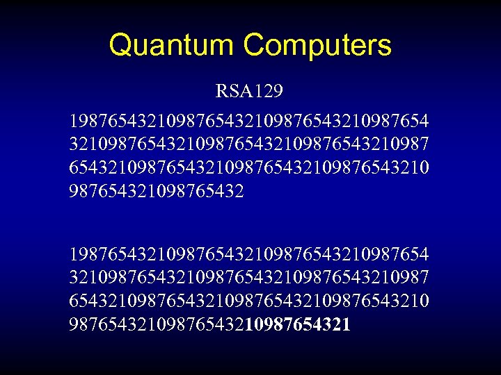 Quantum Computers RSA 129 19876543210987654321098765432109876543210987 6543210987654321098765432109876543210987654321