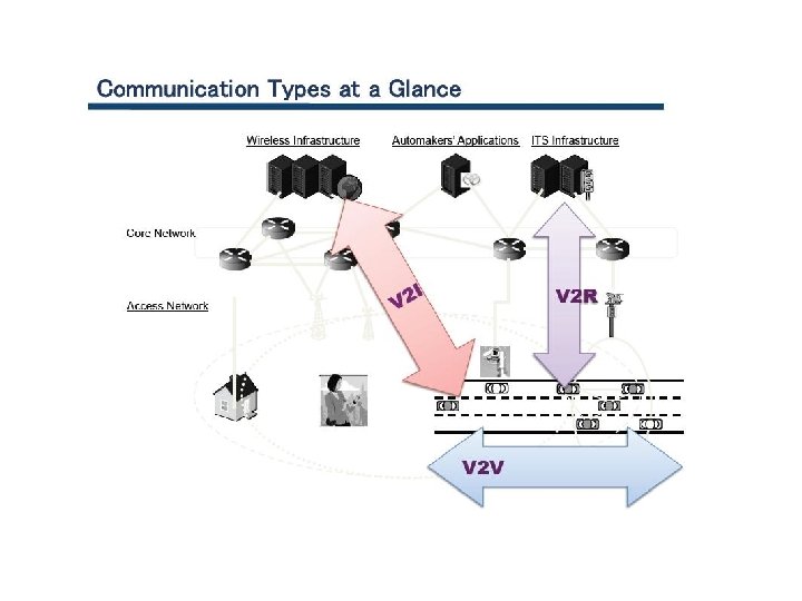 Communication Types • Vehicle to Vehicle (V 2 V) • Vehicle to Infrastructure (V 2 I) • Vehicle to Roadside (V 2 R) Hybrid Models • Vehicle to Vehicle (V 2 V) & Vehicle to Infrastructure (V 2 I) • Vehicle to Vehicle (V 2 V) & Vehicle to Roadside (V 2 R)
