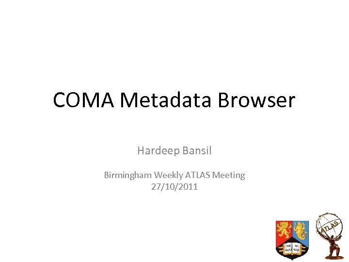 COMA Metadata Browser Hardeep Bansil Birmingham Weekly ATLAS Meeting 27/10/2011