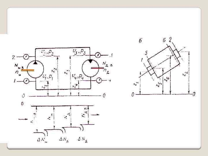 Классификация гидромашин (на примере насоса): если приращение энергии в насосе обусловлено только слагаемым - то насос называется объемным (поршневой, пластинчатый, шестеренный, винтовой и т. д. ); если приращение энергии в насосе обусловлено слагаемыми - то насос называется гидродинамическим (лопастной, вихревой и др. ). Параметры относятся к всасывающему патрубку насоса, a параметры - к нагнетательному патрубку насоса.
