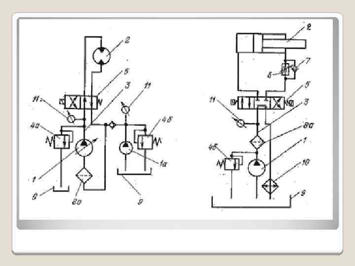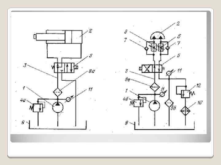Блок-схемы гидропривода Система а) управления Гидродвигатель Магистраль Нагрузка