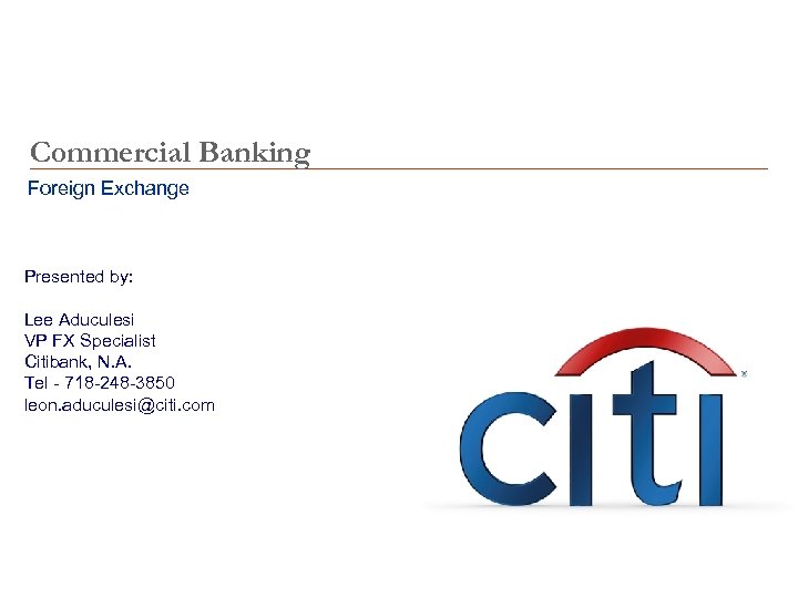 Commercial Banking Foreign Exchange Presented by: Lee Aduculesi VP FX Specialist Citibank, N. A. Tel - 718 -248 -3850 leon. aduculesi@citi. com
