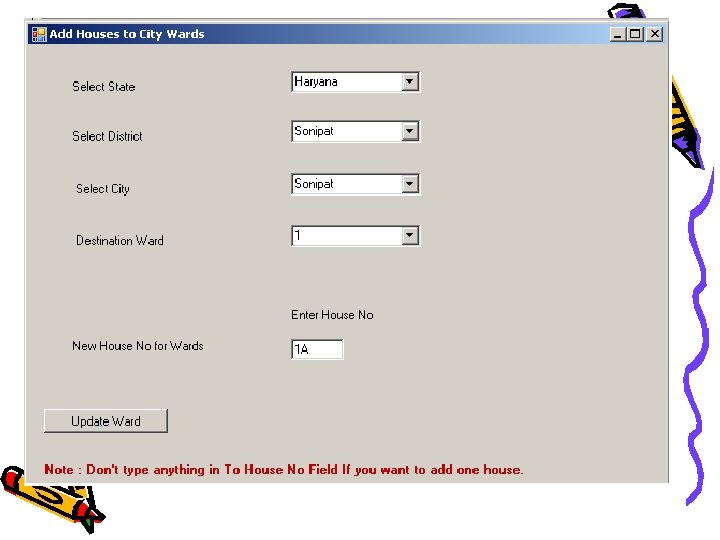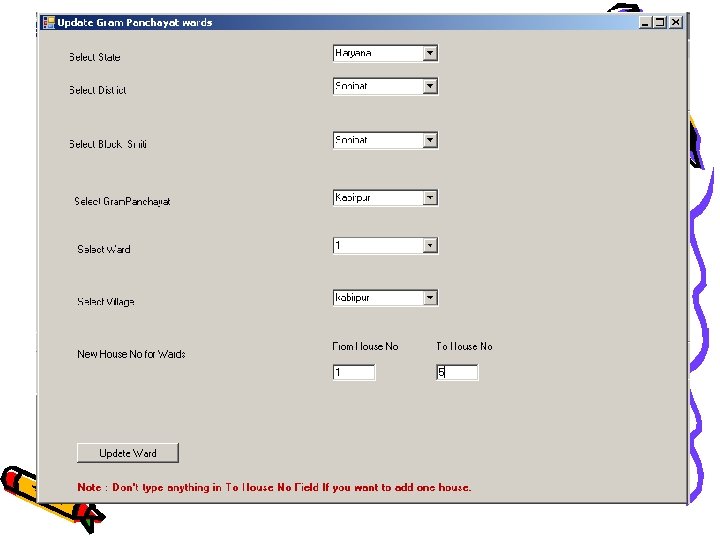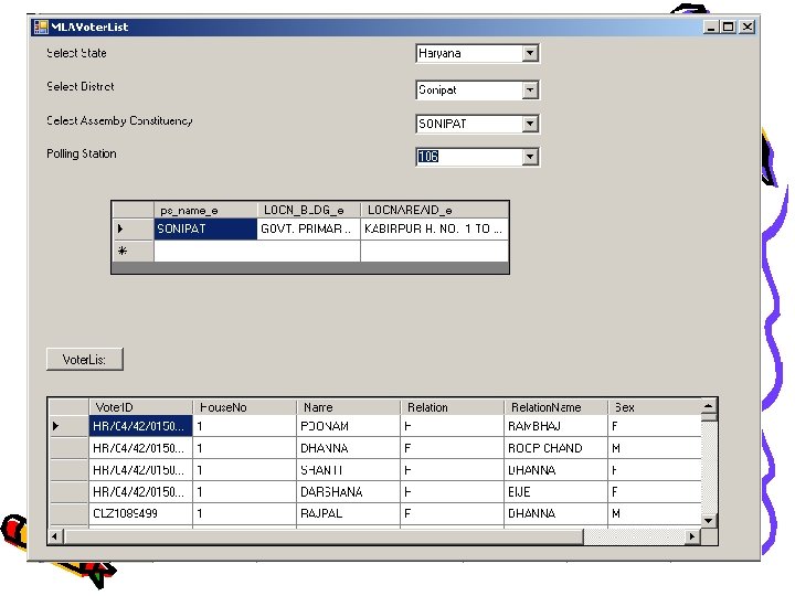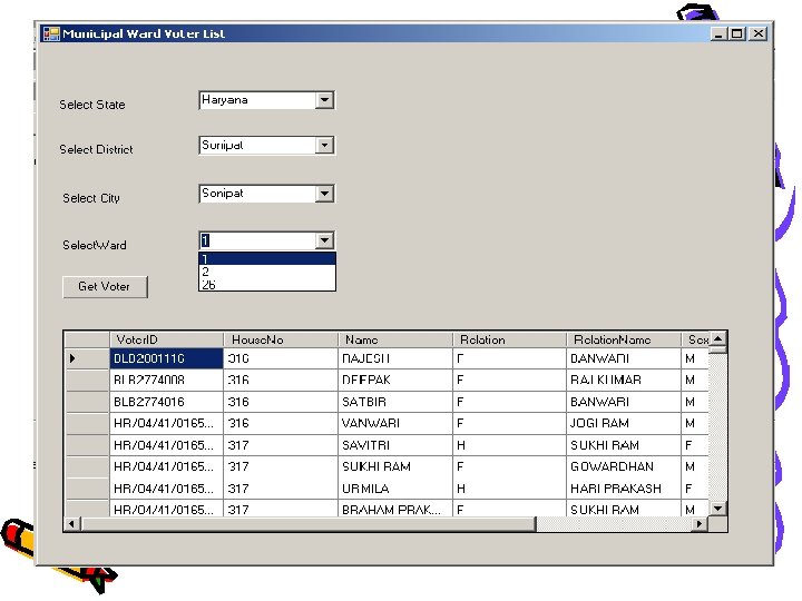 Solution: - Single Database • Single Database of Voters List – The Assembly Voter list can be used to generate the Panchayat Voter List or vice-versa – Automatic Generation of Panchayat List or Assembly List – This can be done on-demand or as a scheduled process. – The Reports can be printed for a Hardcopy List or viewed in a soft copy format for each Village. • Additional features – Features like searching across specific fields like House Number will be possible in the proposed solution.