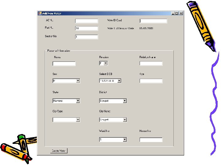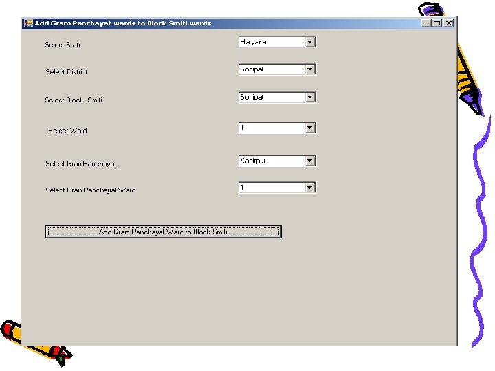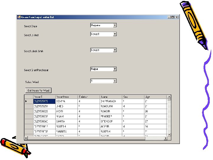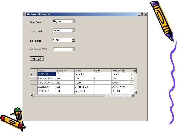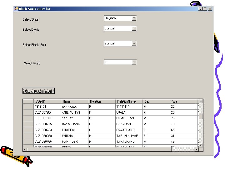 Situation: - Two separate lists • Separate Panchayat and Assembly Voter lists – Both lists are independently created at considerable additional costs. – Every update to the Assembly list needs to be reflected in the Panchayat List. – Discrepancies exist between the lists which lead to incorrect Voter identification. – Creating the Panchayat List is a manual process and is error prone. – No photo images in the PRI list