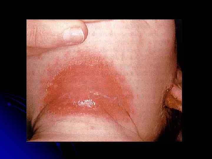 Seborrheic Dermatitis Common, generally self-limiting Its cause remains ill-understood There is a genetic predisposition Most frequent between the ages of 1 to 6 mo. Greasy, salmon-colored scaling eruption Hair-bearing and intertriginous areas The rash causes no discomfort or itching