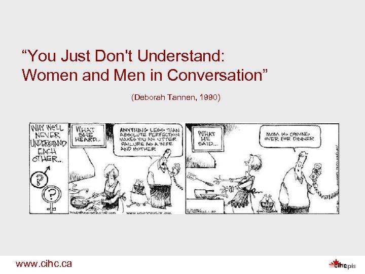 “You Just Don't Understand: Women and Men in Conversation” (Deborah Tannen, 1990) www. cihc. ca
